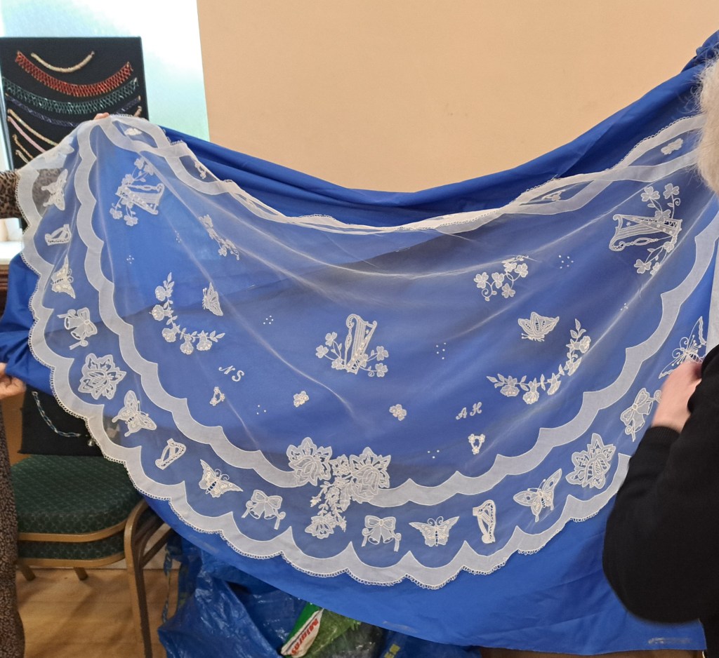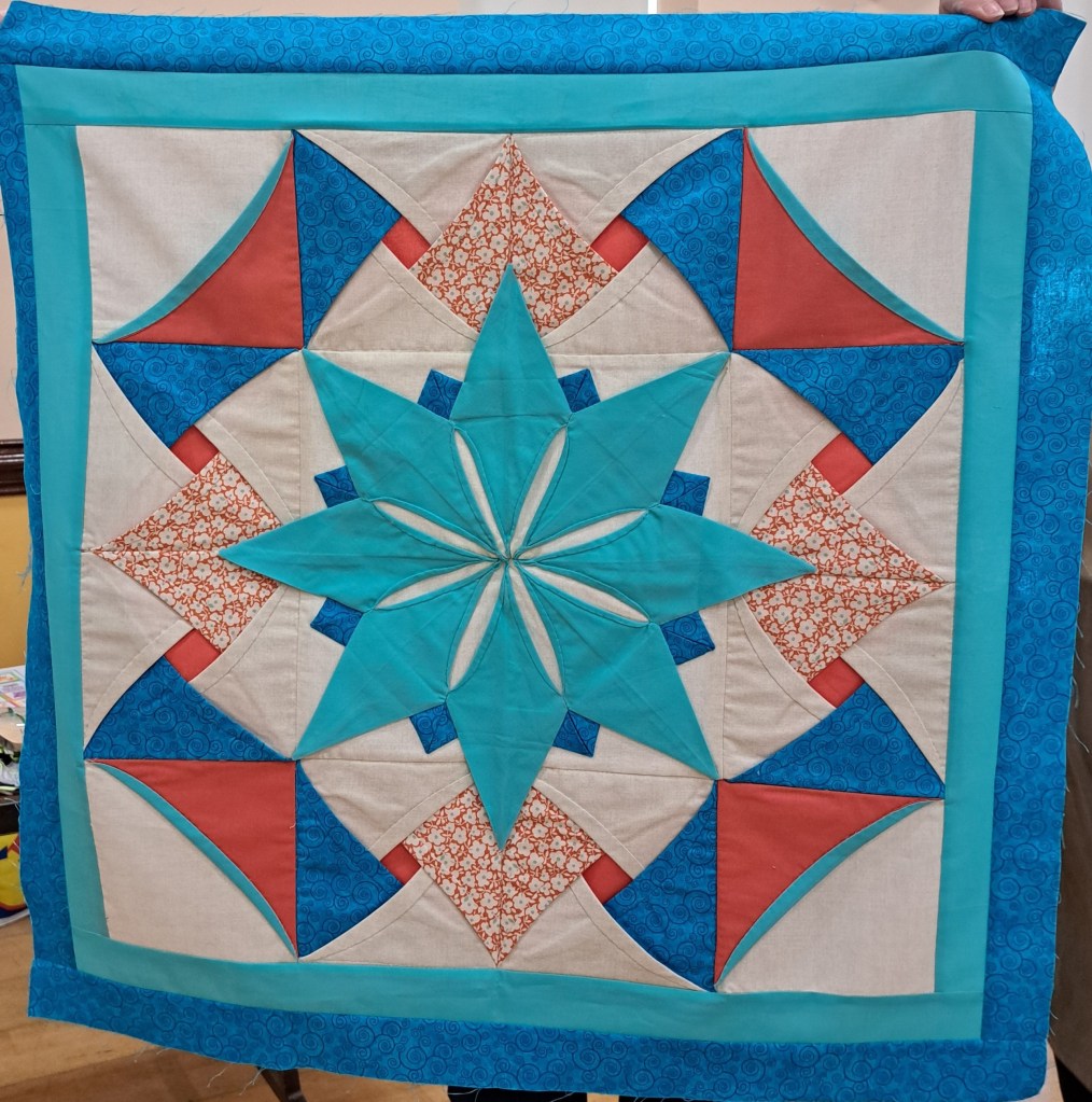 The Spring flowers were in full bloom and the sun was shining on all who gathered last Saturday for our monthly meeting. A excellent number were in attendance who enjoyed cakes and chat while surveying the beautiful fabric on offer at the pop up shop. We were delighted to welcome Tonomi from Slaney Quilts https://slaneyquiltingstudio.com/