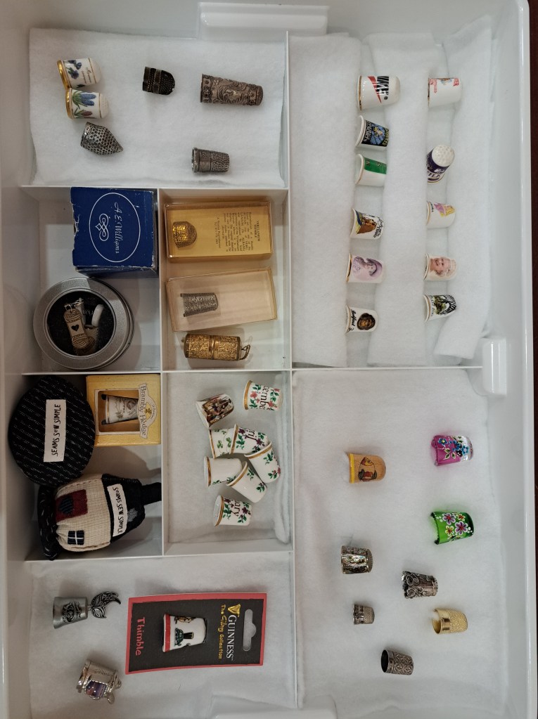 Lyn Norton gave an enthusiastic talk about her considerable collection of thimbles. How they developed as a tool in both the fishing and sewing field and then how they were produced as an advertising item and then as a collectable. Lyn brought along a part of her collection which was on display following the talk. There were some really interesting examples both practical and ornate made from a range of materials including silver, porcelain, and glass.