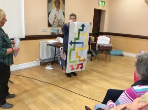 Ester Kiely gave us a fantastic talk on her Journey through knitting, quilting and textiles work. Also her great work with schools and involvement in the Community. Everyone was enthralled by her.