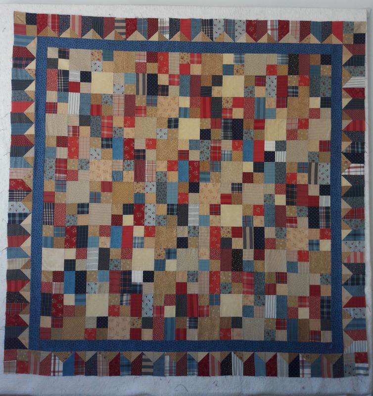 Louise O’Hanlon – Hi everyone. This started out as a jelly roll I purchased. Put it all together and it looked awful. Nothing matched. Unusual for jelly rolls. I decided to buy some plain fabric and cut it all into HST’s. Not too bad now. A present for my niece’s 50th birthday.