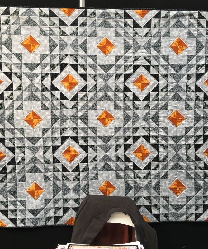 Honor Mangan – I started this quilt at class with Moya from some batik fabric I had… We found this zigzag pattern in an old magazine… It now awaits batting, etc. whenever we get back to class.
