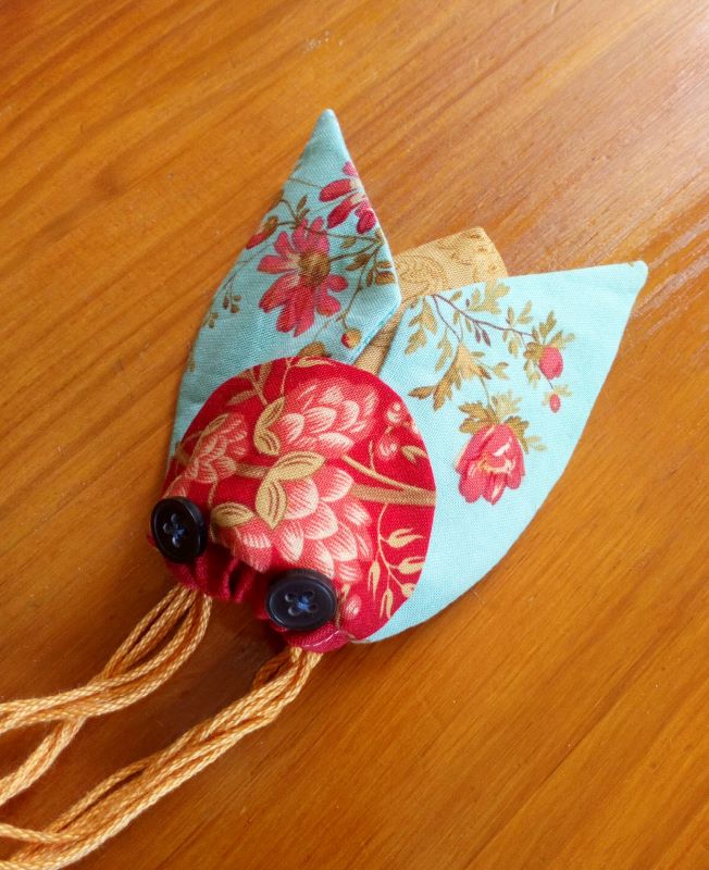 Sandra Jansen – I have also finished this small “bug” drawstring bag from a pattern in a Japanese book that I had on the shelf for ages. A bit of a puzzle especially since I wanted to add a lining, but the measurements and templates at least were not in Japanese…