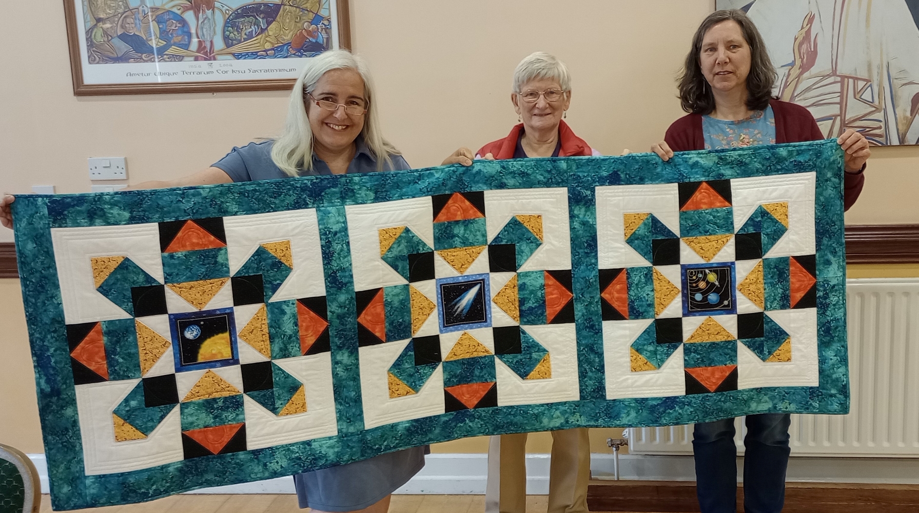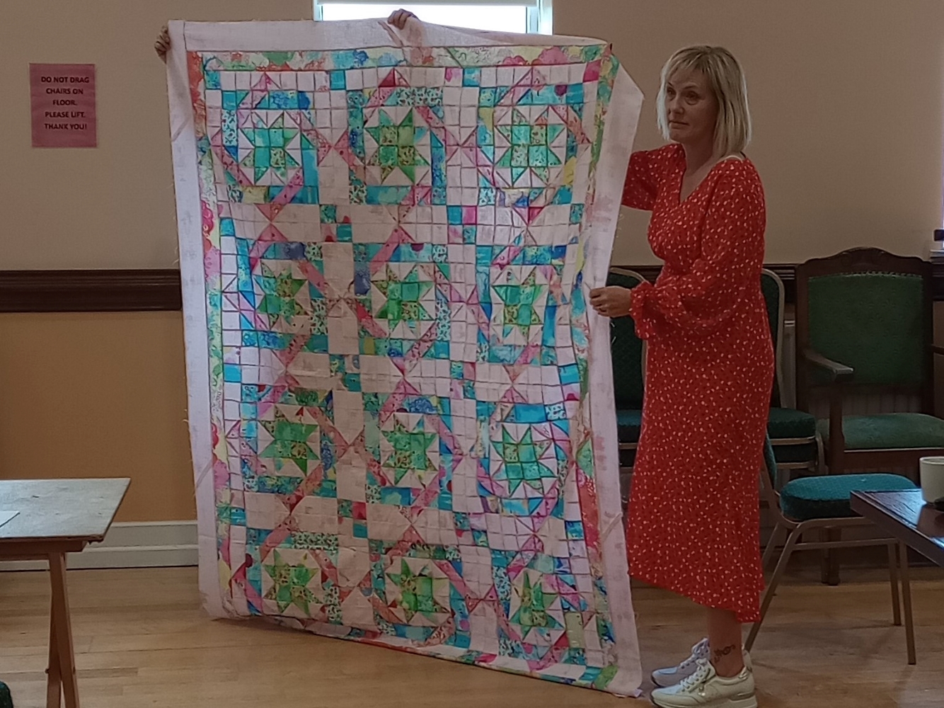 Have a look below at the photos from the meeting and the projects shown by our members, starting with some of the outgoing committee with the chairperson’s quilt: