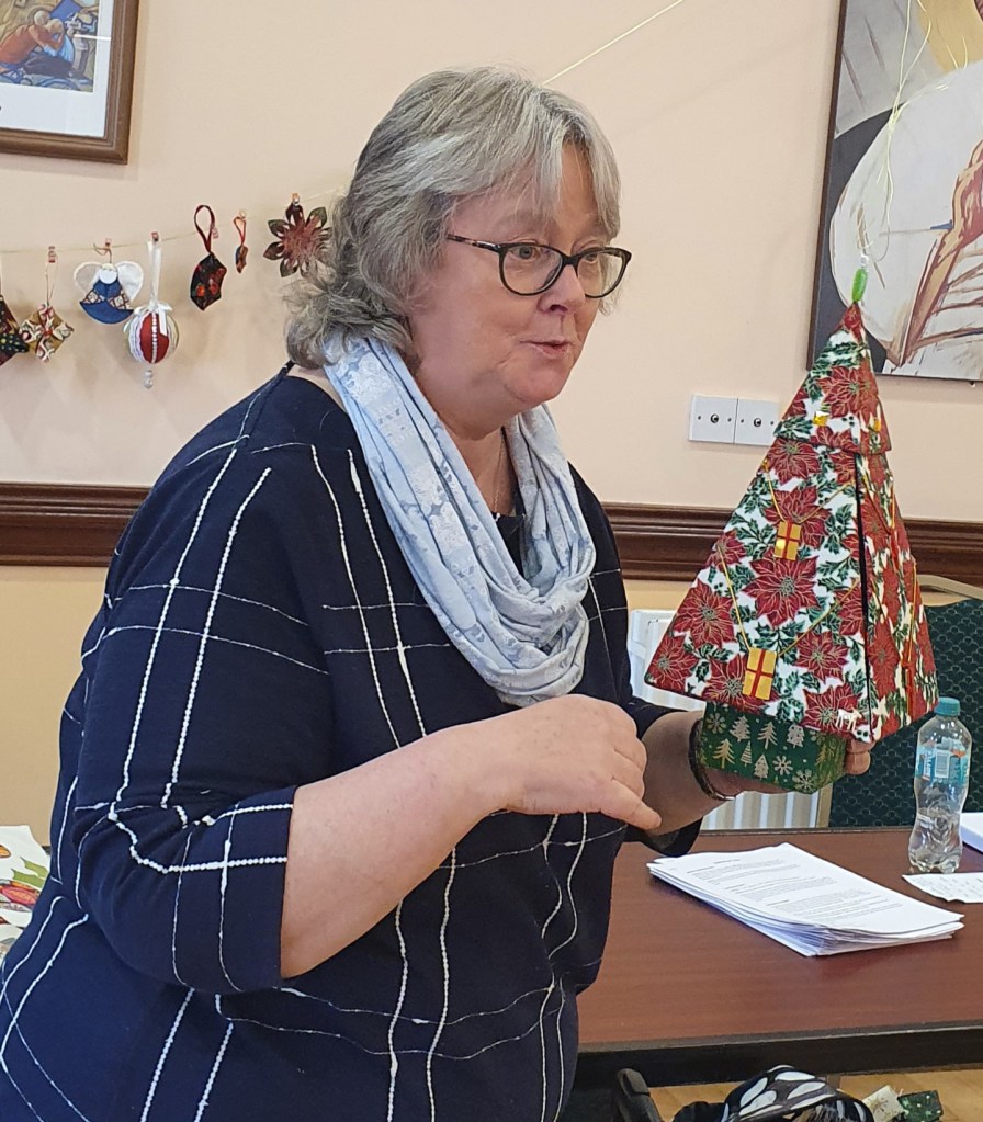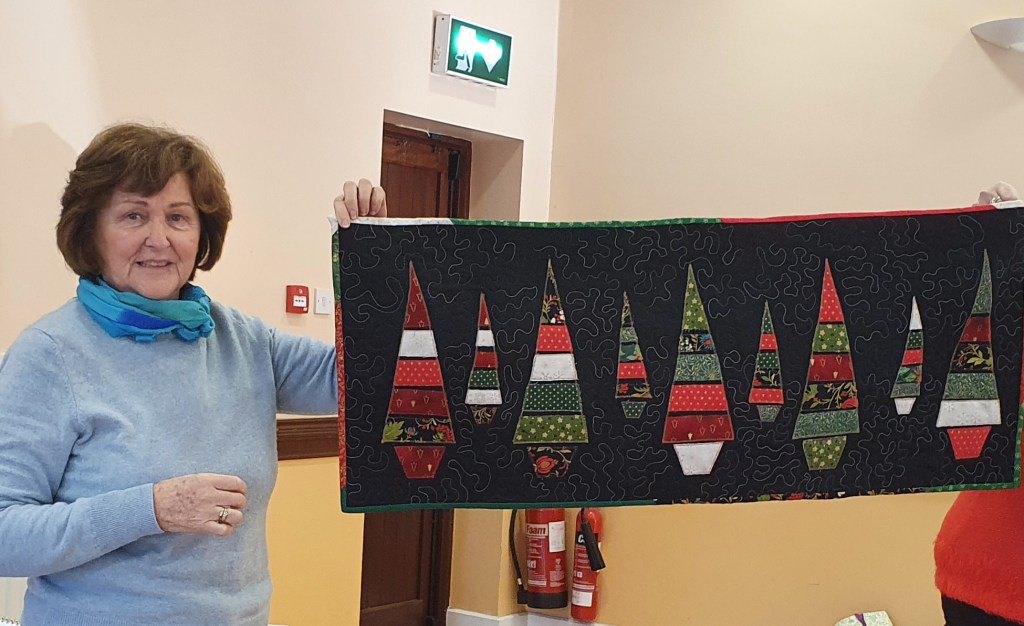 Áine Foley of Lismore Quilt Co. braved the weather to bring her shop and she also gave us some great quick Christmas project ideas in her demonstration. These included wonky Christmas trees, Miriam Gogarty’s beautiful pattern – Emma’s Tree and some free patterns from www.makower.co.uk and Studio Sew of Course (Sandra Jansen)