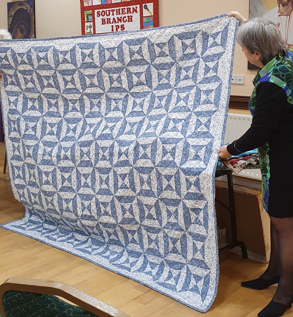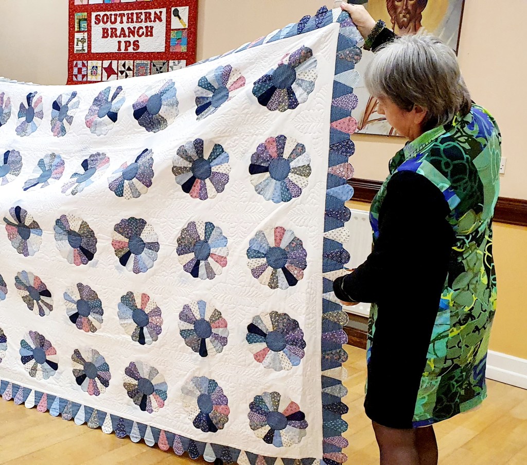 It really was a great meeting, many thanks to all who attended. Thanks to Moya Geraghty of Patchwork Plus, who brought the shop with lots of goodies for us to treat ourselves to – because we’re worth it!