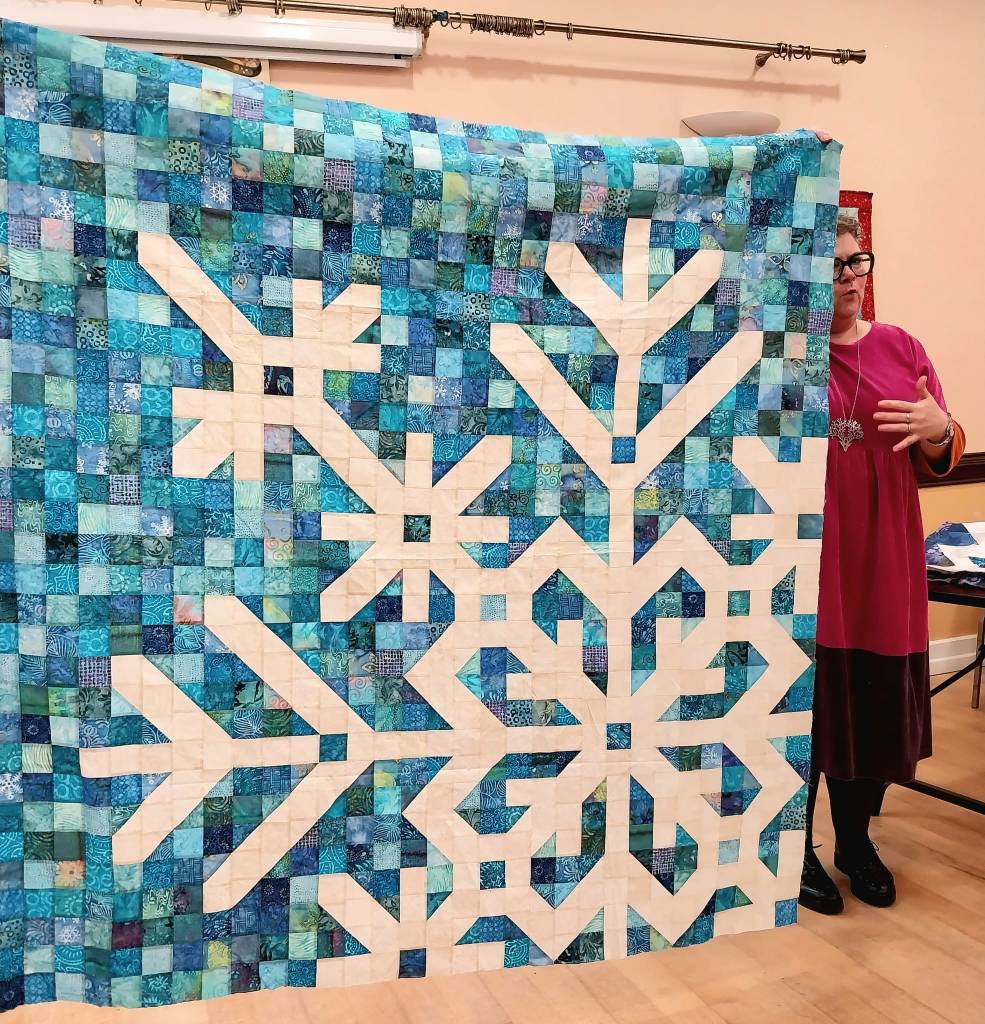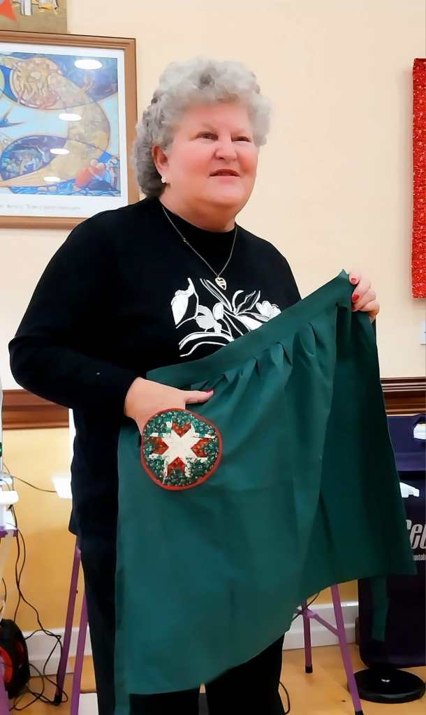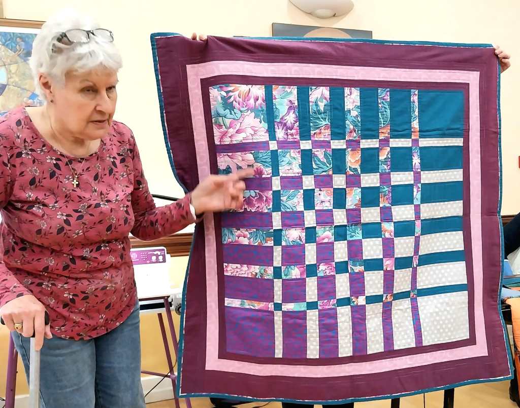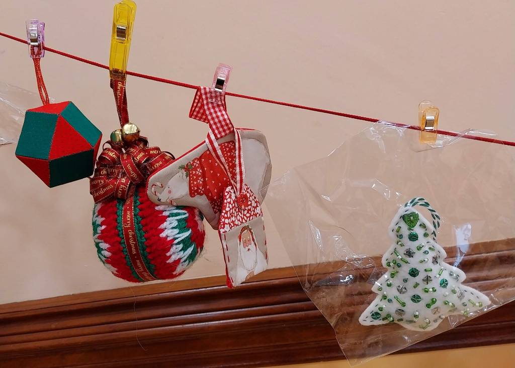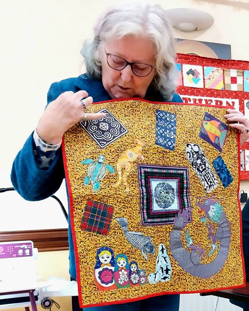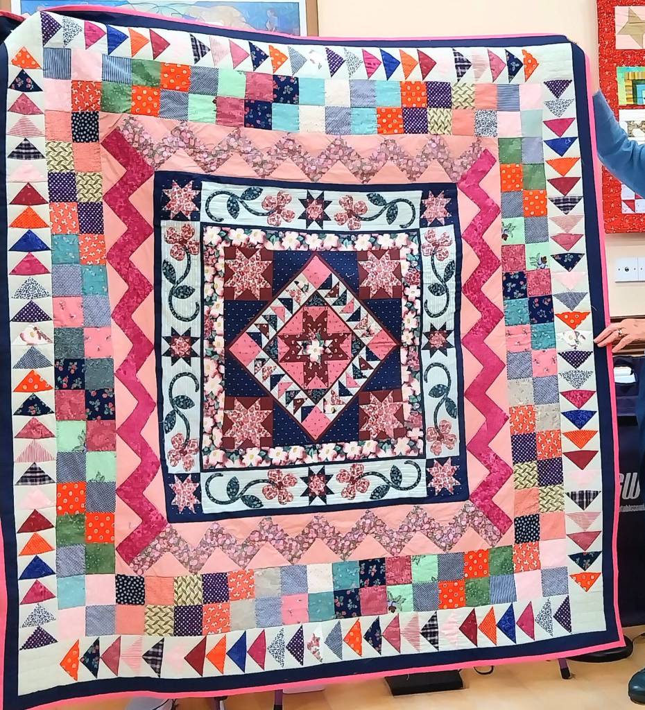 A very festive meeting took place on 13th December. There was lots of merriment to be had and some mince pies consumed amid the chats while browsing Lismore Quilts pop up shop and viewing the Christmas tree decorations on display. Following the success of last years decoration swap this year there were even more entries and a huge array of different styles and techniques. We were joined by Executive Chairperson Mary Bell, who travelled down from Dublin. SewEzi tables were exhibited by Yvonne and Clare who was also taking orders. Any one interested in the tables can contact Yvonne at eweziuk@gmail.com Ann Prendergast acted as our quizmaster for a festive fun table quiz. After the quiz Mrs Claus aided by a willing elf distributed a gift for everyone. followed by an outstanding display for our last show and tell of the year.