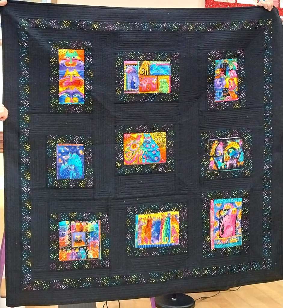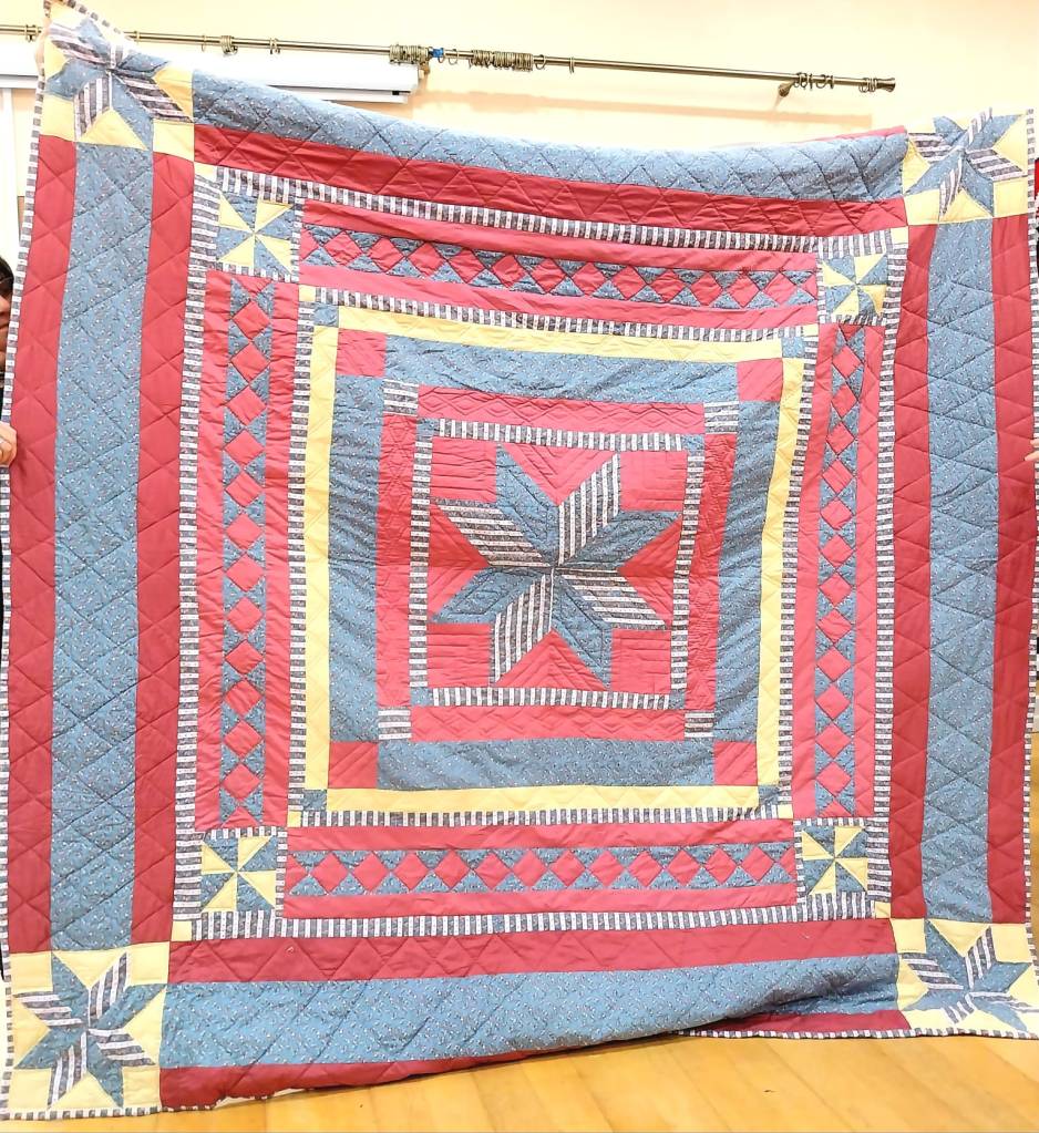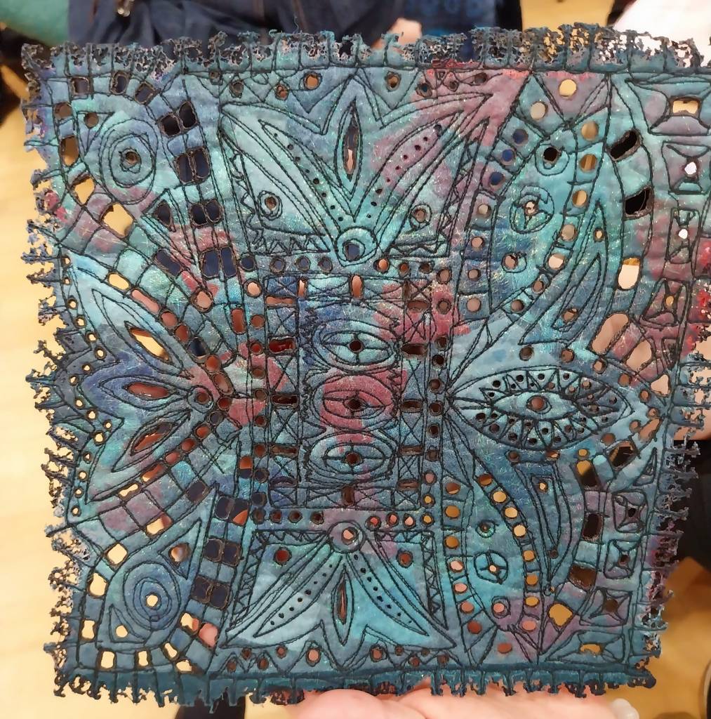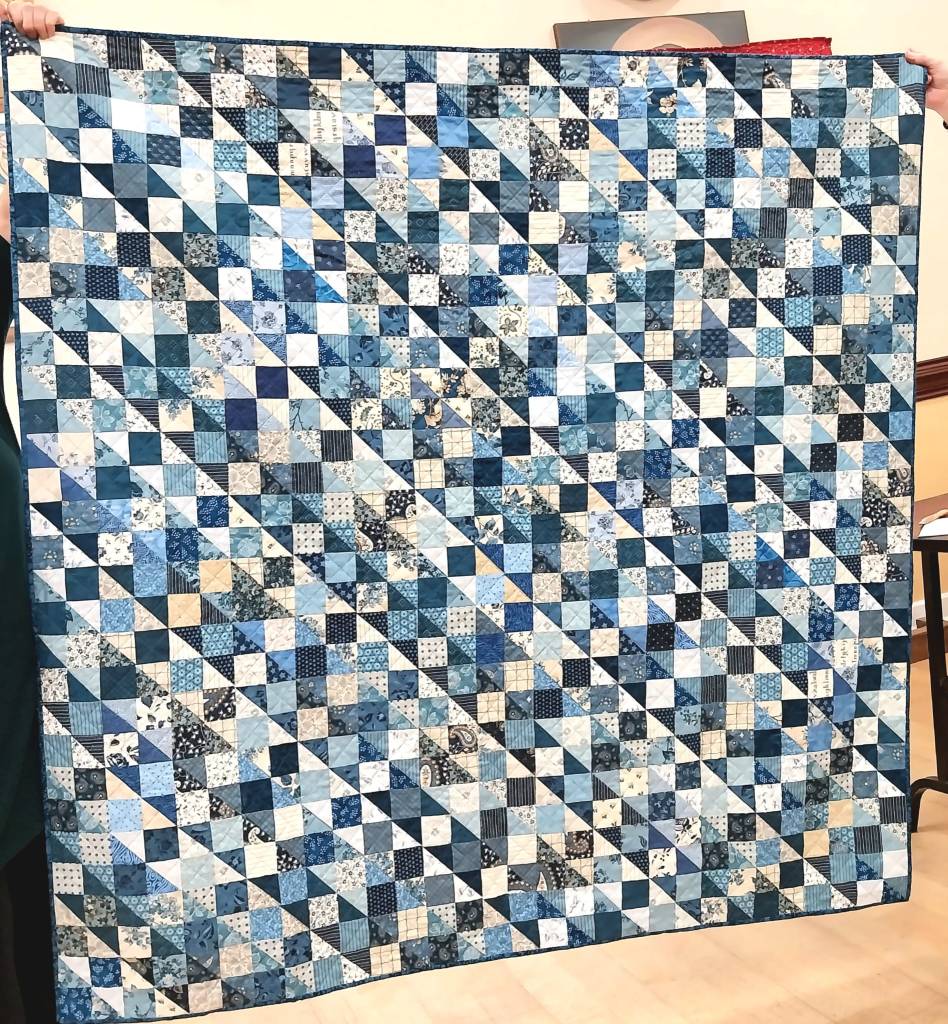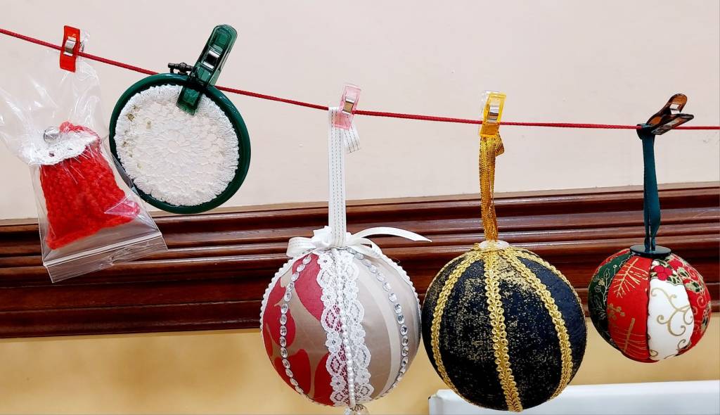 A very festive meeting took place on 13th December. There was lots of merriment to be had and some mince pies consumed amid the chats while browsing Lismore Quilts pop up shop and viewing the Christmas tree decorations on display. Following the success of last years decoration swap this year there were even more entries and a huge array of different styles and techniques. We were joined by Executive Chairperson Mary Bell, who travelled down from Dublin. SewEzi tables were exhibited by Yvonne and Clare who was also taking orders. Any one interested in the tables can contact Yvonne at eweziuk@gmail.com Ann Prendergast acted as our quizmaster for a festive fun table quiz. After the quiz Mrs Claus aided by a willing elf distributed a gift for everyone. followed by an outstanding display for our last show and tell of the year.
