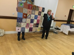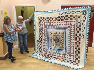 Carol Cave presenting Assumpta Lydon with a Quilt from the wonderful members