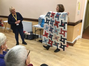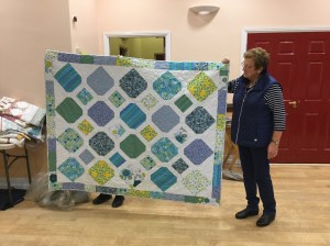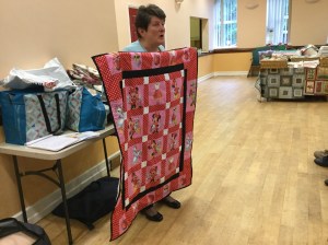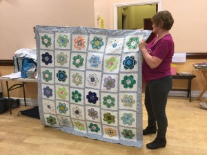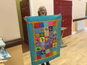 Siobhan’s piece from Heidi’s workshopFinnoulas Minnie Mouse QuiltMaryHeidi’s pieceHeidi’s split 9 patchCoraCora’s beautiful log cabinMairead’s donated hexi quilt which she finishedJoan’s first QuiltJoan’s 2nd Quilt!Moya’s fab Quilt